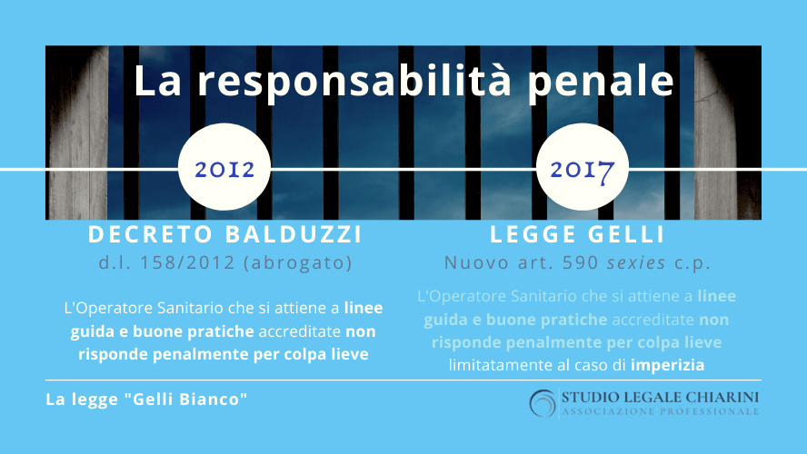 Inoltre, una parte significativa delle disposizioni che la legge Balduzzi conteneva è stata abrogata o comunque superata da un’altra fonte normativa: la successiva legge Gelli-Bianco, di cui abbiamo già trattato in molte occasioni.