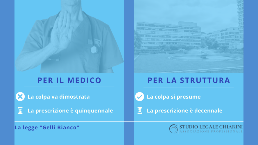 La legge Gelli ha infatti definitivamente archiviato la teoria del cd. “contatto sociale”, confermando che, nell’esercizio della propria professione, il medico risponde del proprio operato ai sensi dell’articolo 2043 del codice civile, quindi in conformità alle norme sulla responsabilità extracontrattuale (con la conseguenza che l’onere della prova circa la colpa ricade, questa volta, sul paziente danneggiato, e che l’azione risarcitoria si prescrive in cinque anni, e non in dieci anni come accade per la responsabilità della struttura ospedaliera).