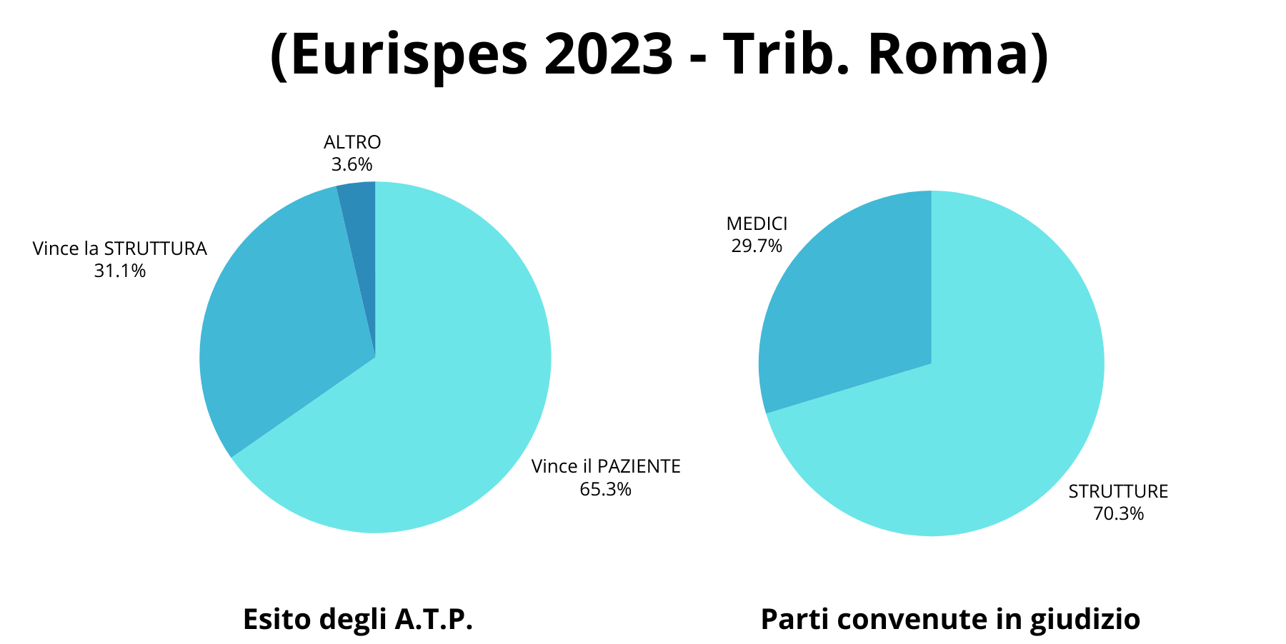 - gli ATP si concludono positivamente per il paziente nei 2/3 dei casi (con conferma, quindi, della responsabilità professionale della struttura sanitaria o del medico), mentre la struttura “vince” in meno di 1/3 dei casi;