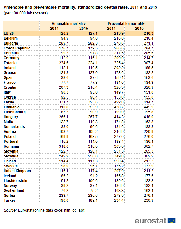 – Eurostat, Amenable and preventable deaths statistics, 2018