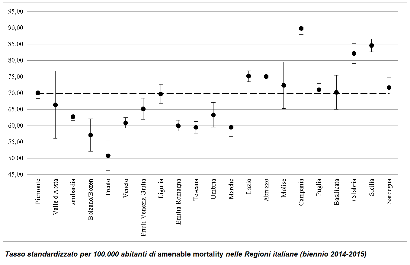 L’amenable mortality costituisce, di fatto, una mortalità prematura conseguente ad assistenza sanitaria inadeguata (id est: morte da “malasanità”), pertanto è evidente come sia necessario maggior impegno, a livello centrale, al fine di attenuare le sperequazioni esistenti tra Nord e Sud nella tutela della salute, consentendo così a tutti i cittadini – in condizioni di uguaglianza ed indipendentemente dalla Regione di appartenenza – di avere accesso a cure e trattamenti sanitari efficaci e tempestivi.