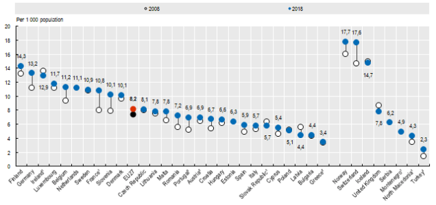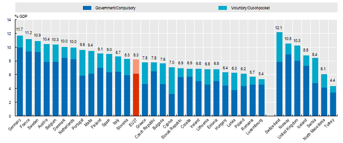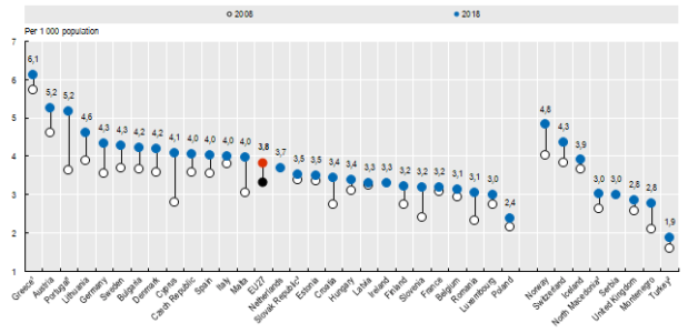 E’ stata recentemente rilasciata l’edizione 2020 di “Health at a Glance: Europe, pubblicazione biennale curata dall’O.C.S.E. che consente – come suggerisce il titolo – di avere una veduta d’insieme sullo stato della salute e dei sistemi sanitari in 35 paesi europei (tra cui 27 Stati membri dell’U.E., 5 che aspirano ad esserlo, 3 Stati della Associazione Europea di Libero Scambio, ed il Regno Unito).