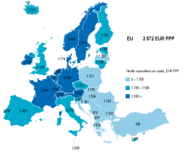 Il nostro Paese risulta in linea con la media europea per quanto riguarda l’incidenza percentuale della spesa sanitaria sul P.I.L., con un valore complessivo dell’8,7% (a fronte di un valore medio E.U. dell’8,3%), con una incidenza della spesa pubblica per il 6,4% e di quella privata per il restante 2,3%. Siamo però molto distanti dagli investimenti che vengono destinati all’assistenza sanitaria da stati come la Germania (11,7% del P.I.L.), la Francia (11,2%) o la Svizzera (12,1%).